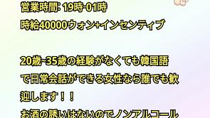 ⭐チャムシル駅(잠실) 女性スタッフ募集 -お友達と一緒にバイト可能で出勤時間自由!退勤時間自由! 営業時間:19時-23時 時給40000ウォン+インセンティブ 20歳〜40歳 仕事経験なくても韓国語で日常会話できる女性なら誰でも歓迎します!!お酒の勧誘はないのでノンアルコール接客でOK! < 面接問い合わせ > 電話 010 4521 4559 カカオトーク :knmy486 문의주세요 ~^^~^^