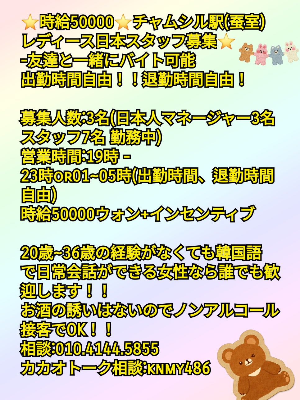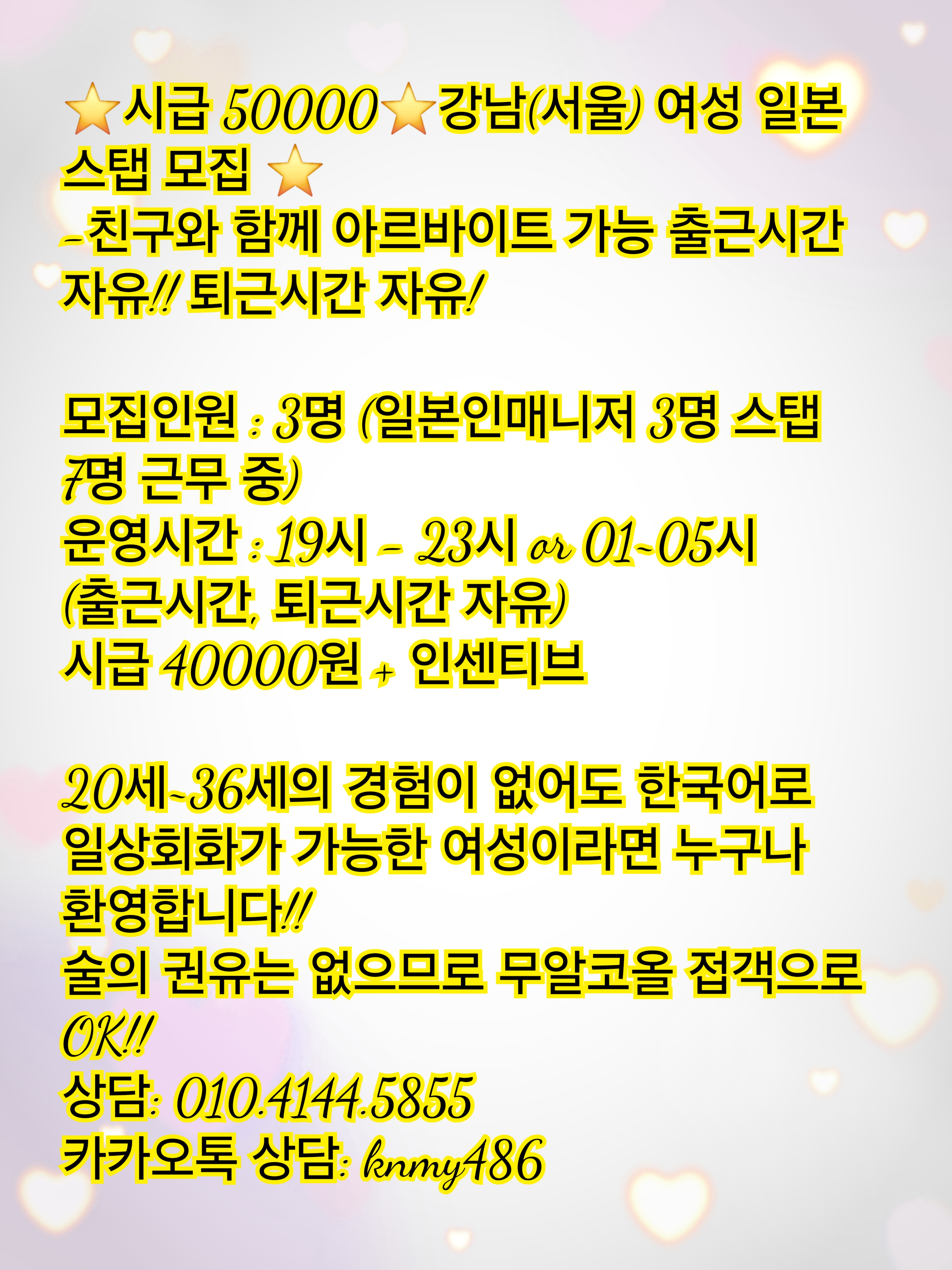 ⭐시급 50000⭐잠실역(잠실) 여성 스태프 모집 ⭐