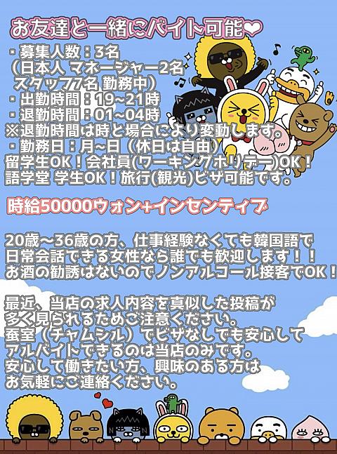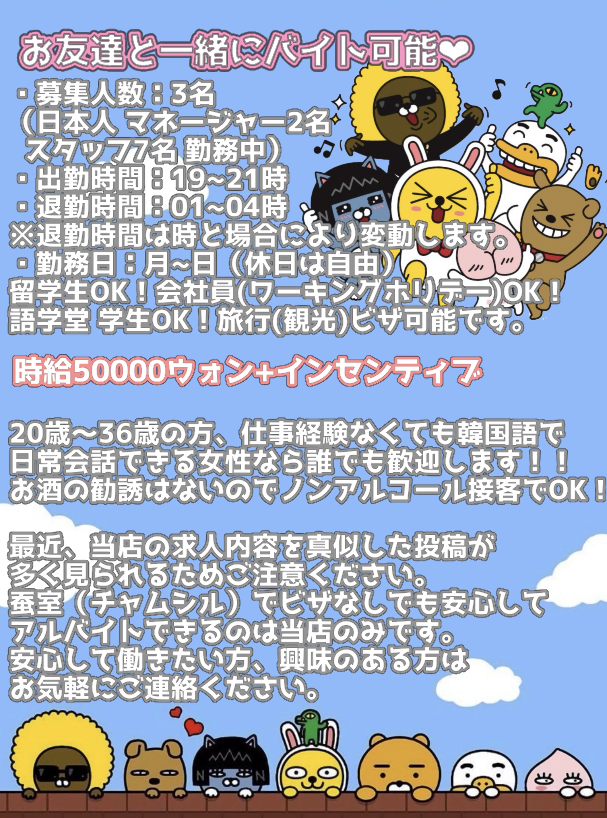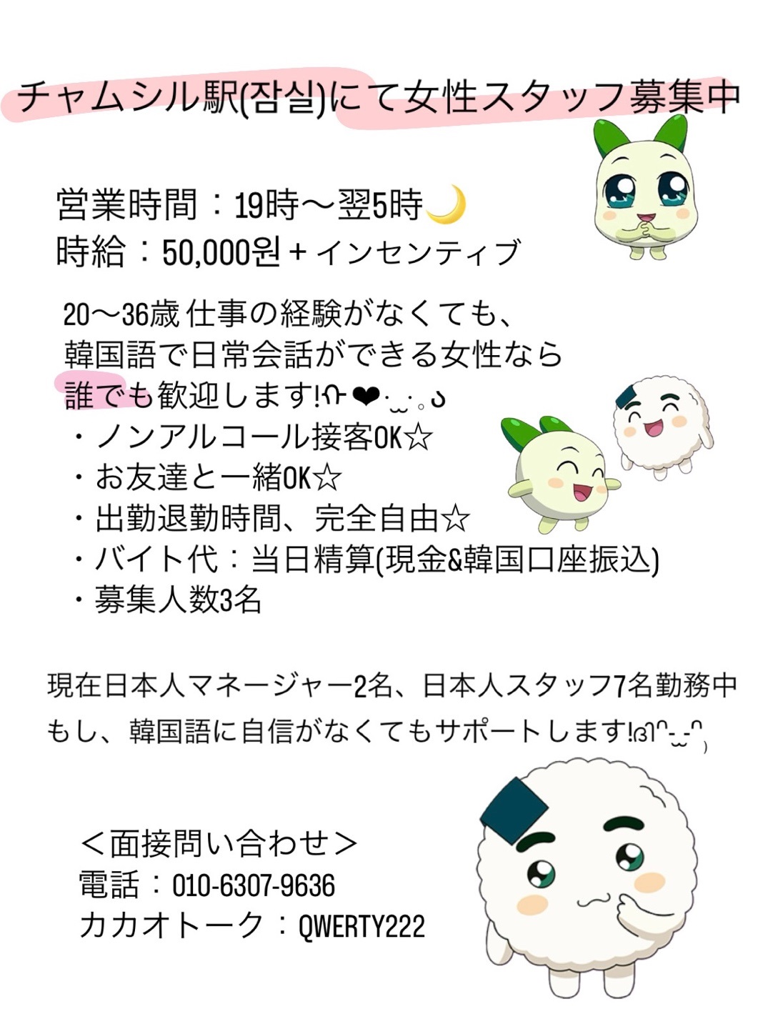 ⭐韓国 バイト探し♡ ソウル(잠실) 女性スタッフ募集⭐